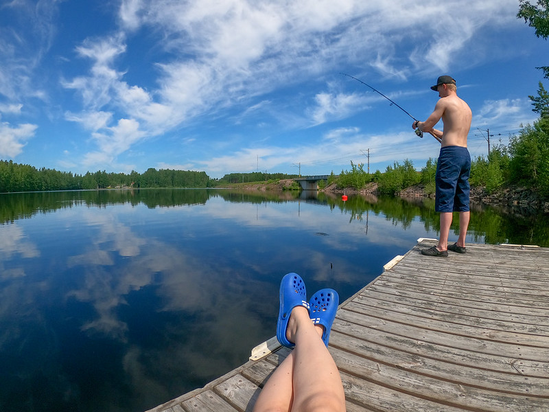 Heittelyn jälkeen Sanni huomasi että hauki jammaili suoraan laiturin alla. Nauro minulle. Kumpikin.