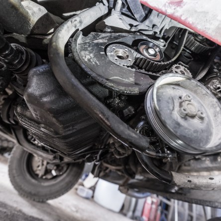 Jakohihnan, vesipumpun, kiristimen ja ”damper” pyörän vaihto